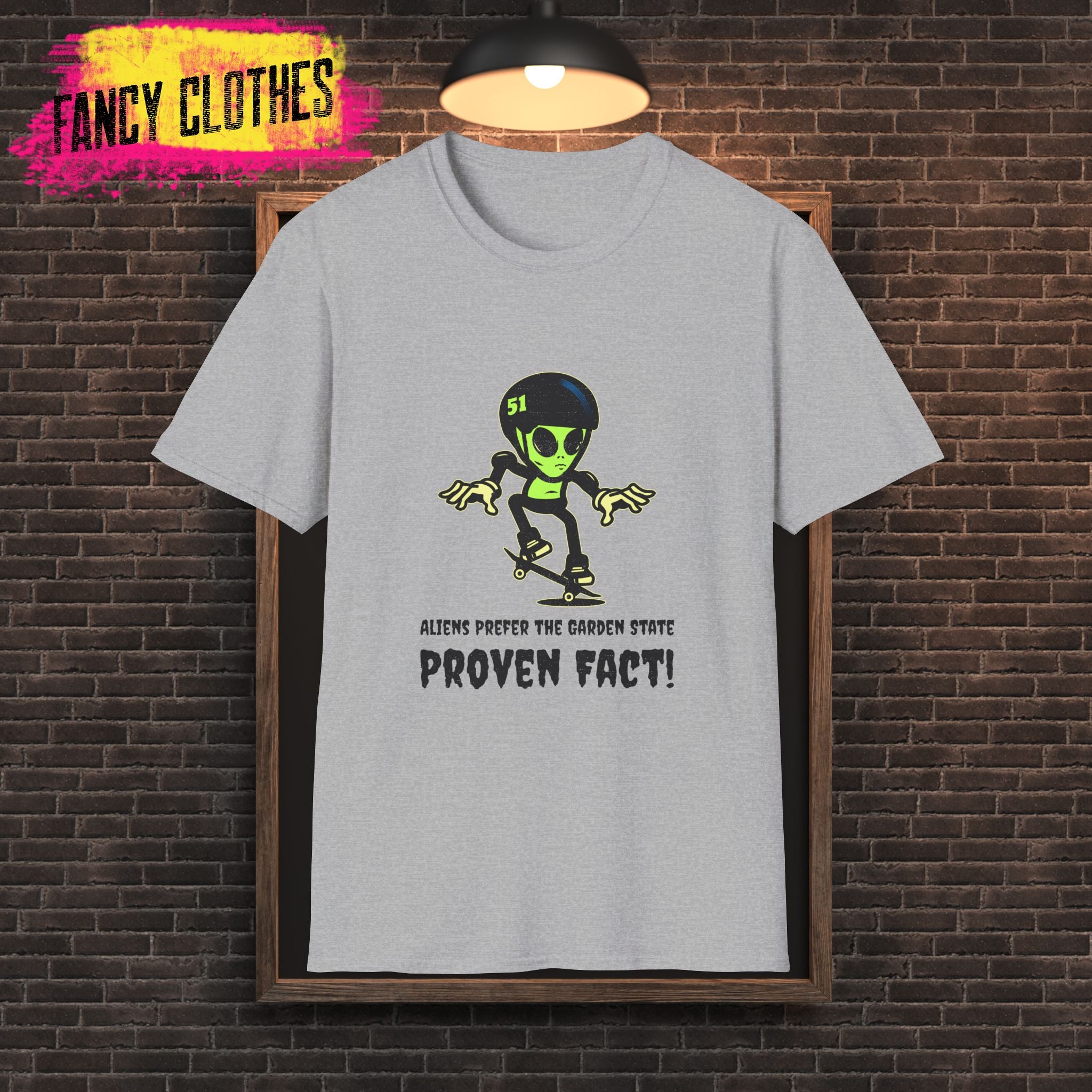 Fun unisex T-Shirt featuring a design about aliens sightings on the east coast, perfect for those who believe in extraterrestrial life or enjoy quirky, unique tees. This softstyle T-shirt is made from 100% ring-spun cotton for a lightweight and comfortable feel, suitable for adults and various occasions throughout the year.
