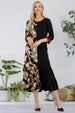 This modest midi-dress is decorated with a unique color print. This 3/4 ruffle sleeve piece is designed with a round neck, tiered ruffle skirt, and concealed side pockets. This dress is perfect for weekends, school, and summer fall transition.