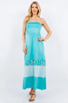 This Color Block Tube Maxi Dress combines bold color blocking for a striking and modern look. The tube top design adds a touch of elegance and simplicity to the dress. Perfect for a summer day out or a special occasion, this dress will make a statement with its eye-catching colors and maxi length.