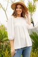 We really like this classic top with 3/4 puff sleeves and two bow detail on the back . This top is perfect for spring/summer. It comes in such lovely pastel colors. Pair this style with your favorite bottoms, and favorite accessories! You will look effortlessly beautiful.