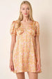 Mittoshop Printed V-Neck Puff Sleeve Mini Dress