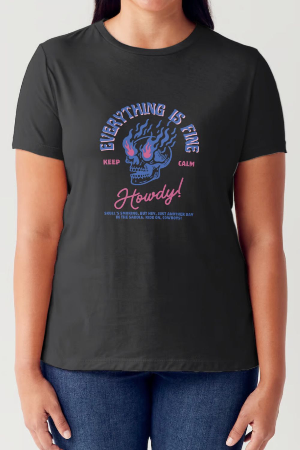 Simply Love Full Size EVERYTHING IS FINE HOWDY! Flaming Skull Short Sleeve Tubular T-Shirt