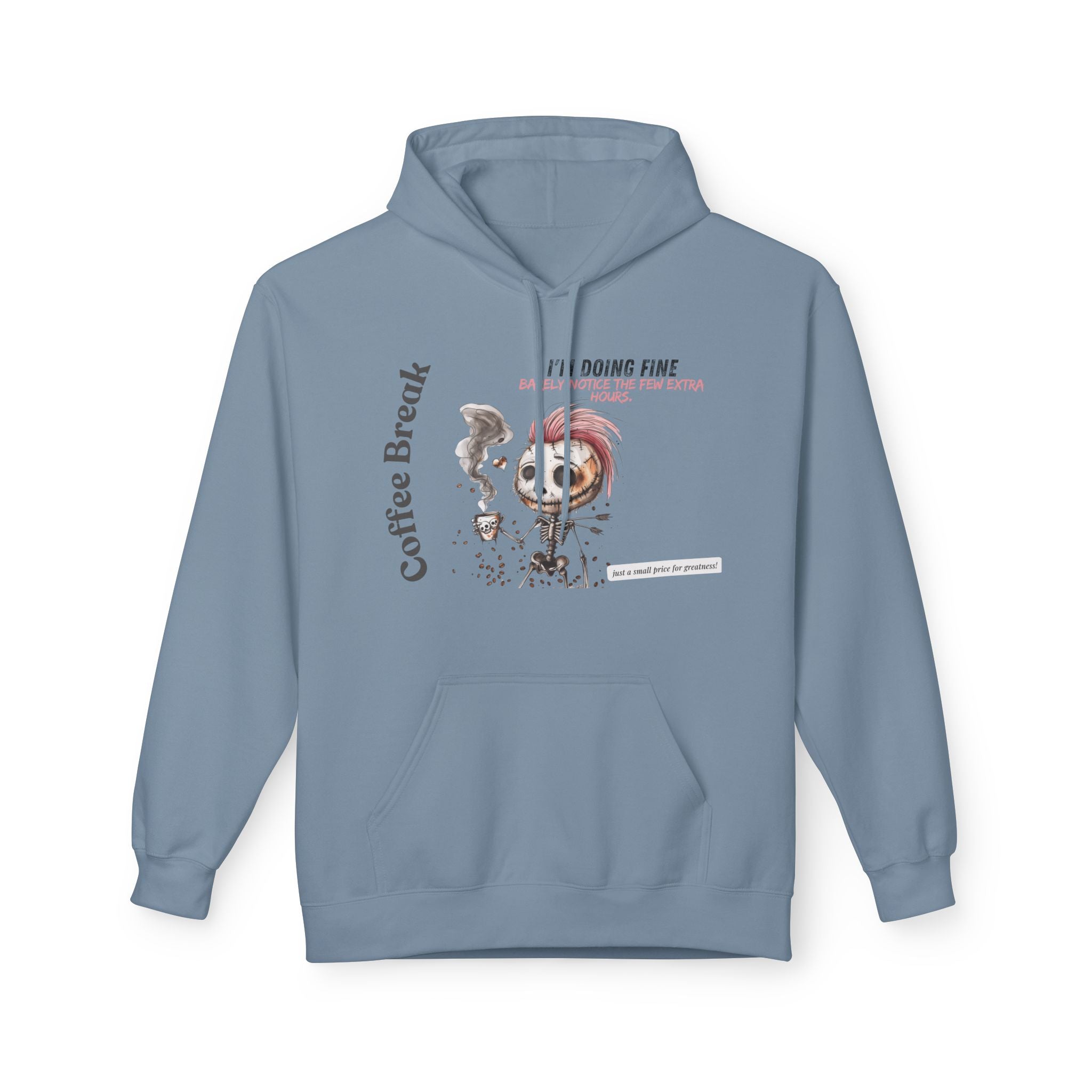 Get cozy while embracing your edgy, coffee-fueled spirit with our custom fleece hoodie featuring the unique design "Coffee Break - i´m doing fine" Perfect for those long hours where you're...